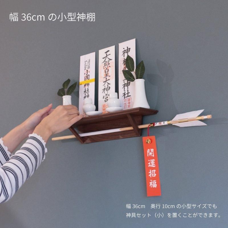 シンプルな形で小型神棚ながら、破魔矢を掛けることができます。