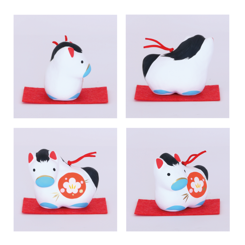 破魔矢をくわえた午(うま)は、災いを打ち払い、幸運を射止める縁起の良い姿。